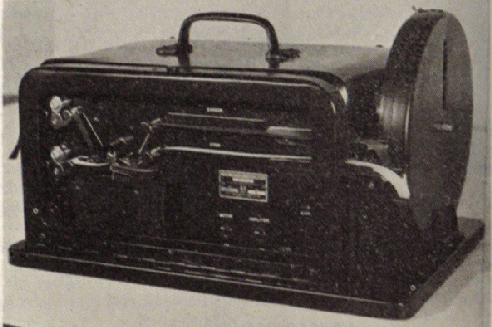 The recorder followed the principles already used in the broadcast facsimile receiver, exept for the reduction in scaleof the helix drum. Also, a typewriter ribbon was substituted for the carbon paper. Fair results were obtained with this apparatus. By using serial motors. and altenators special tests were made at speeds up to 120 inches per minute, which is equal to abot 200 words per minute of typewriting.