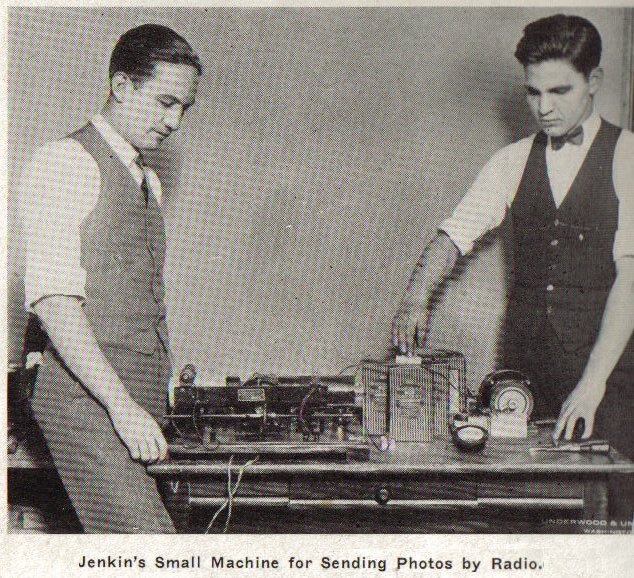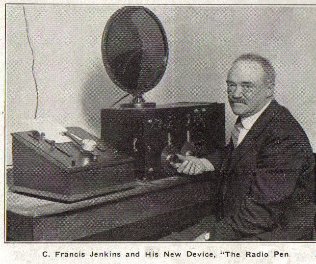 From pen-and-ink photoradio Jenkins turned to television, and on June 13, 1925, in Washington, he demonstrated a mechanical scanning system using a revolving disk, the rim being lined with tiny lenses. Collaborating with the Navy, in 1926, he flashed weather maps from Arlington, Virginia, to ships at sea, using a mysterious radio "pen".