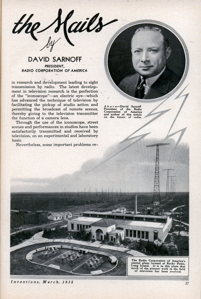 By DAVID SARNOFF PRESIDENT, RADIO CORPORATION OF AMERICA