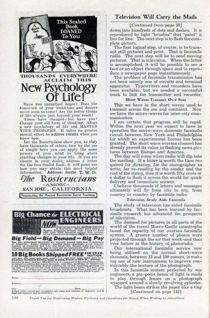 I believe thousands of letters and messages ultimately will fly from city to city, from country to country by facsimile radio.