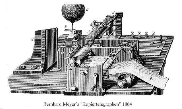For many years the development of facsimile equipment was directed towards improving the mechanics of the scanning and reproduction functions. In 1865 the first working trials for a commercially viable facsimile machine was set up in France by an Italian, Caselli. Shortly after this Meyer facsimile machines were also tried out in the French telegraph systems.