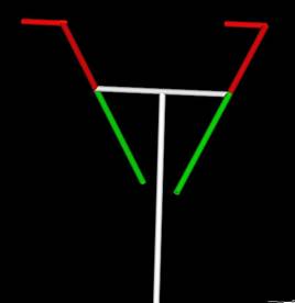 The Cross is two ½ wave dipoles, crossed, and spaced ¼ wave and fed in phase. Fig 1 is a picture of the Cross .The Red and Green is intended to show how the dipoles need to be phased for RHCP along an axis in line with the horizontal white boom. This fig 1 shows the cross as viewed from the North West, looking toward the South East as the Cross is pointing North.