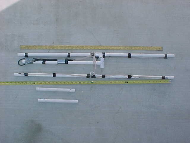 Figure 1 With the dipoles mounted as shown in figure 1, there will be a null in the radiation pattern at zenith. To minimize that zenith null, the ends of the dipoles can be bent to point to the North thereby providing some sensitivity to a satellite at/near zenith. Figure 2 shows how I bent the ends of the dipoles. Figure 2 shows the bent Cross as viewed from the South West looking toward the North East.